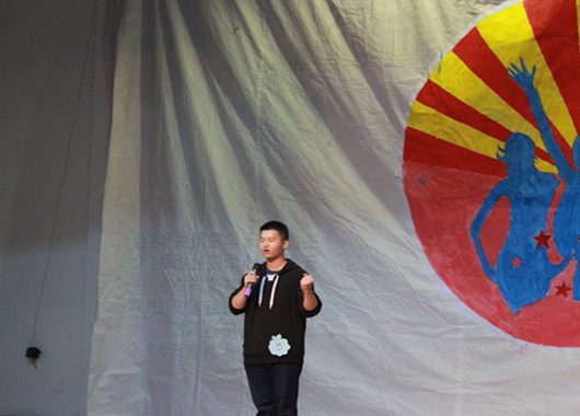 随着战队PK的结束,比赛进入白热化阶段,第二环节争冠60秒激烈开始。在这一环节中,每位选手只有60s的时间进行演讲,每小组四个人演讲完后,由评委进行点评。前8位选手们流利的口语和激扬的声调纷纷博得评委们的好评,赛场顿时弥漫着紧张的气氛。期间,13级工管专业的金花用优美的歌声缓和了比赛气氛,剩下的8位选手也陆续以精彩的演讲获得评委们的相应肯定。