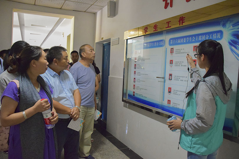 随后,周筱芬从学院工作人员,招生及生源情况,学生工作的几大特色,学生的就业情况,学生奖励服务,学生工作成绩六方面进行全面讲解。其次,周筱芬特别强调了“三防,四安,五不要”的注意事项以及六个“一律”从而确保学生在校安全。同时她建议各位新生家长每学期最少与辅导员或班主任联系1-2次从中了解学生在校情况。会后,计算机学院志愿者带领各位家长参观了逸夫楼,详尽生动地介绍了计算机学院微科创新创业基地并向其展示了计算机学院获得的各类奖项从而使在场的各位家长对计算机学院有了更深入的认识。