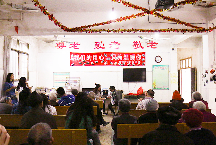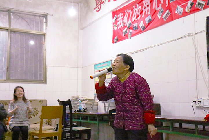在交流中我们了解到,今天还是一位老人的生日,但由于过于年迈无法下床观看我们的节目。一部分志愿者立马跑去老人房间,一起为老人唱了生日快乐歌。或许我们准备的并不充分 ,甚至还少几分默契,但老人眼底的笑意是对我们最大的鼓励。