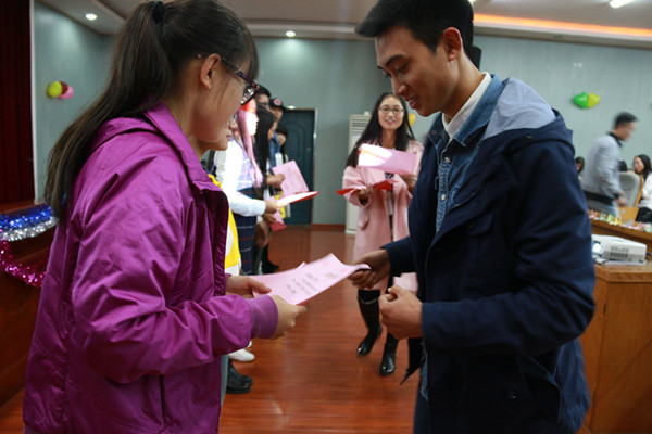 其次,为表彰校运会上默默付出的志愿者,运动员郭俊、李杰应邀为他们颁发了奖状。“马列小组一直秉持‘在行动中荣光’的宗旨参加一系列公益活动,校运会上的‘一帮一’是我们能为运动员,能为商学院做的事,所以,我们马列小组很庆幸能有这样的机会,将一直进行下去。”针对运动会上志愿者们的付出,马列小组的负责人陈子睿说道。