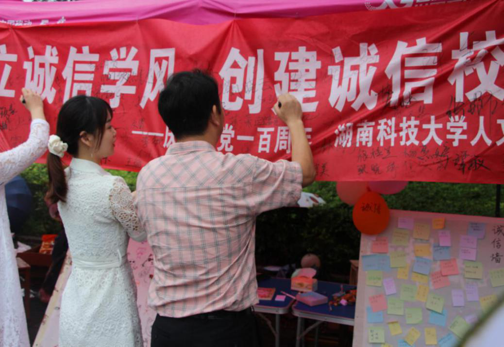 为庆祝建党一百周年,推进思想政治教育与精神文明建设,进一步提高学生的诚信素质和道德修养。6月10日下午,人文学院在外国语楼前开展诚信教育主题摆点活动。人文学院党委副书记邓辉、学工办主任马忠石、团委书记曾思妍、辅导员赵华、杜萌莅临现场指导。