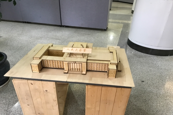答:因为找不到人民大会堂的具体数据,我们只能通过寻找人民大会堂的照片,根据大会堂的比例来做大会堂上的平立面,做出平立面后就可以利用激光机做立面。虽然很复杂,但是,十九大让大家做了个模型,做了个剪纸,大家增加了新的技能和能力,相互间更加了解,支部成员更加团结,不忘初心勇往直前,支部发展越来越好。打铁还要自身硬,我们强,支部强,支部强,建院强。