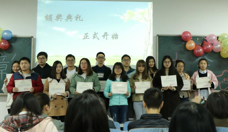接下来社长石香钰宣布了关爱自闭症支教、桃园小学支教、感恩守夜人、走访敬老院、12.5志愿者日一系列活动获奖成员的名单,并给受到表彰的优秀社员颁发荣誉证书。