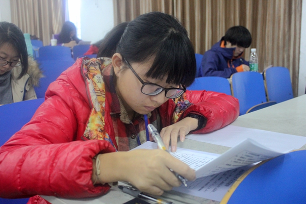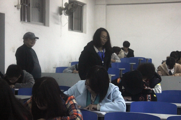 考场中脖子上戴着由蓝色绳子牵引着的工作牌的学生党员和干部分外抢眼,他们坐在考场中,引导着整个空间的风气。“良好的考风考纪是学生乃至整个学院的高素质体现,学生干部和党员就应该树立好榜样!”刘云峰老师如是说道。视察途中,她一再强调考场纪律问题,指出考生必须严格遵守考纪,为考场营造良好的风气,学生干部、党员作为优秀学生代表更是责无旁贷。考试不仅是对学习成果的检验,对学风考风的考核,更是对参考学生人格品质的考察。