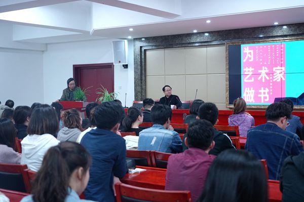 2018年4月9日晚7点30分,建筑与艺术设计学院于立志楼4-1展开“为艺术家做书”专题讲座。主讲人为湖南美术出版社编审兼湖南省设计艺术家协会副秘书长——陈秋伟。副院长尹建国、吴志军出席本次讲座,前来听讲的还有相关专业老师、视觉传达设计及其他相关专业学生和热爱设计人士,视觉传达系系主任林军主持本次讲座。
