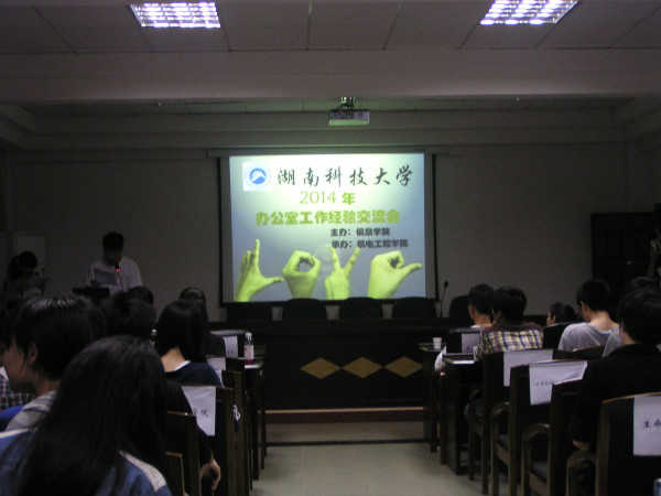 19时许,伴随着优美的旋律此次大会正式开始。首先由吴一凡代表校团委办公室致词,希望借此次大会的契机加深各学院办公室工作和学习上的交流。接下来,由各学院办公室的代表围绕部门简介、部门工作、部门活动三个方面,通过视频和ppt的播放与讲解,展示出了各自部门的风采。怎样协调好学生会工作、怎样及时发送通知信息、怎样做好证书文件的打印工作,各学院都分享了他们的行之有效的经验和方法。会议结束后各位代表都表示受益匪浅,值得认真学习。