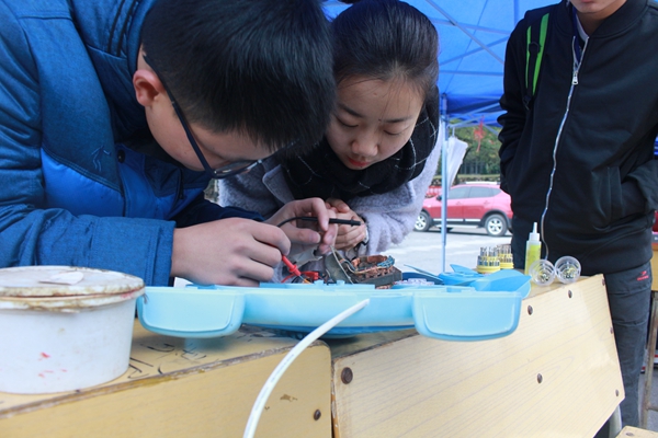 第一天的天气并不是很好,冬雨伴着冷风。蓝色雨棚下却是隐藏着一片火热,四院的科协委员们早已忙起来了。据一位负责人说到在开展这次活动之前,已经对科协委员们进行了相应的技能培训。本次活动的开办除了是对校园内及周围居民的义务维修外,还是对委员们动手能力的一种锻炼,提升科协内部四个部门的凝聚力。
