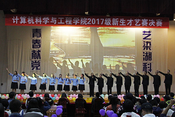 10月22日晚7点,计算机科学与工程学院于南校活动中心举行了“青春献党·艺染湖科”——2017级新生才艺大赛决赛。院党委副书记周筱芬,学工办主任肖爱军,辅导员老师易靓靓、陈苗苗、曹睿卓、王艺蓉、袁东统、以及各班班主任出席观看此次比赛。