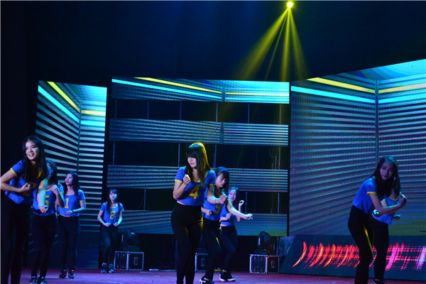 晚会第一个节目就是校艺术团的啦啦操表演,让大家看到了土木学院女生的青春与活力,瞬间点燃了全场气氛。双人舞《trouble maker+only one》动作火辣,推动了全场气氛。双簧表演让全场笑声不断。藏族舞《热巴舞》向全体师生表达祝福。自编、自导、自演的小品《我的路》用诙谐的方式表现出了现代靠关系走后门现象泛滥的情况,同时令人深思。接着我校校友,励志社第一届社长尹主任和他所在公司的卢董事长发表了讲话,他们的发言激起了众多同学奋起拼搏的斗志,点燃了他们的青春激情。
