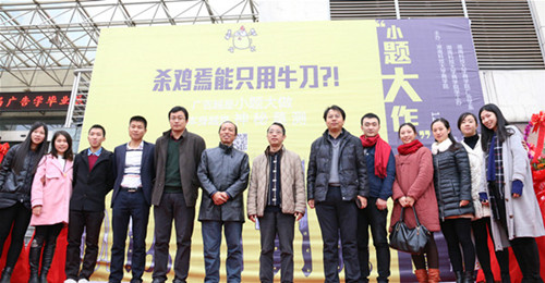本次毕业展以“小题大作”为主题,与“杀鸡焉能只用牛刀”这一口号相契合。开幕式上,党委书记周光明表示如今广告是“朝阳产业”,社会需要它,广告人应从小我上升到民族国家、人类社会,努力创新的层次,为人民谋福利。广告系主任周平教授则阐释道:“生活中的每一件小事都是我们必不可少的大事,要以小预大,以大示小”。周教授还现场泼墨挥毫,书写此次毕业展主题“小题大作”四个大字。由此,毕业展正式拉开帷幕。