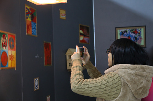 本次展览分为广告文案、摄影作品、营销策划、影视广告、平面广告、手工艺品六个展区。据了解,这六个展区是根据八位老师别出心裁的六道题设计而来,题题有特色,展展有风味。走过红毯,绕过跑道,迈进展厅,随即映入眼帘的是一张由颜料灌满带有“小题大作”四字的气泡膜,两名12级广告毕业生正为大家演示如何将颜料用针孔注入气泡内。围观的同学们目不转睛,一副跃跃欲试的样子。顺着长廊走去,右手边是广告文案区,由十几张广告小海报拼凑的AD(广告)二字韵味十足。长廊尽头是12级毕业生在江西武功山考察时拍摄的作品,既带民族特色,又富艺术风情。手工艺品展区则陈列着各种天马行空的创意作品,同学们不禁纷纷驻足观看,拍照留恋。此外,影视广告展区还记录着12级毕业生们在云南考察时的见闻以及四年大学时光的浓缩,“惹”来了大家的围观,在给观众们带来新鲜与温暖的同时,也使广告学子们收获了感动与怀念。
