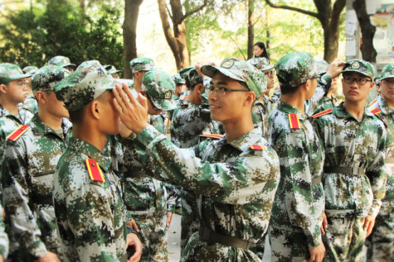在抽查前,连长刘潇教官首先在连内进行了几番严格而全面的检查。男生脱帽、戴帽、下摆以及头发、胡须,不合格的学生,主席团的学长学姐们还贴心地为他们准备了剃须刀和镜子,各新生的指甲、肩章、腰带、鞋带、军训袜等等,新生也都进行了自我检查和互相检查,连内氛围一片和谐团结。新生自我准备好后,我院党委副书记吴帅锋老师又亲自到场进行了一番检查,并提议让新生拿掉眼镜看起来更加精神昂扬,书记尽心尽责,为我院在军训中取得良好成绩无私奉献。一切就绪后,三营三连三排的新生们,意气风发,精神饱满,时刻准备着军训团领导和教官的检查。