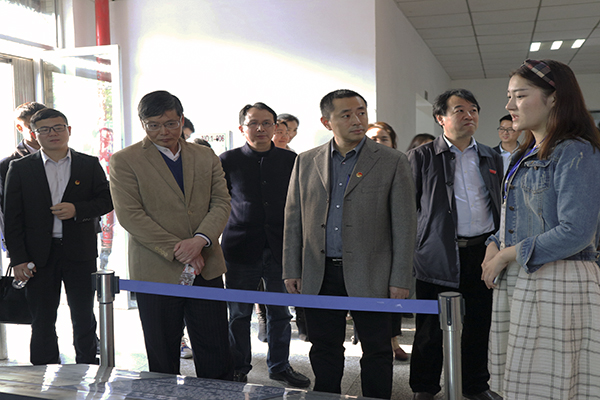 在解说员的带领下,汤立斌一行首先参观了计算机学院微科基地成果展示区,了解到计算机学院微科基地的基本情况及所取得的成绩,对“微科”所蕴含的意义有了深刻体会。而后,参观了微科逐梦工作室及以校训为特色命名的“唯实”、“惟新”、“至诚”、“致志”、“立德”创客工作室。期间,计算机学院优秀学生洪泽才和王骕分别就创新创业和项目开发等进行了解说展示。最后汤立斌一行在逸夫楼门前合影留念。