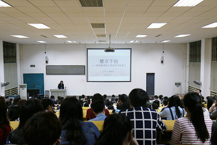当天晚上7:30, “壁立千仞:何绍基书法艺术之美及其当代意义”主题讲座在美术楼104如期展开。鄢福初副厅长为主讲,杨国平教授主持,众多领导、知名艺术家纷纷前来聆听,场面空前,热闹非凡。