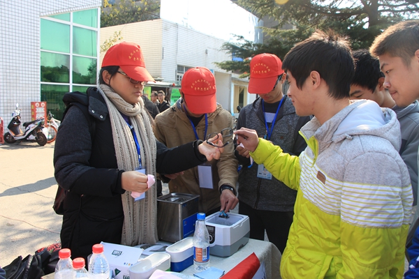 12月16日中午11:50, 由建筑学院青年志愿团组织的爱心送信,买苹果献爱心和爱心清洗眼镜等活动在美食广场开展。
