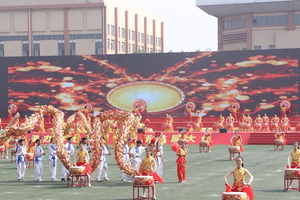 以极具动律的500人啦啦操拉开舞台大幕。借着当下热门歌曲《卡路里》节奏感极强的旋律以及学生们活泼整齐的舞蹈,成功的点燃了在场观众的热情。此次文艺汇演分为龙狮古今、思源致远、桃李芬芳和奋进科大四个篇章,以龙狮共舞、诗歌朗诵、歌舞青春等形式讴歌我校办学70年发展历程与取得的成绩。