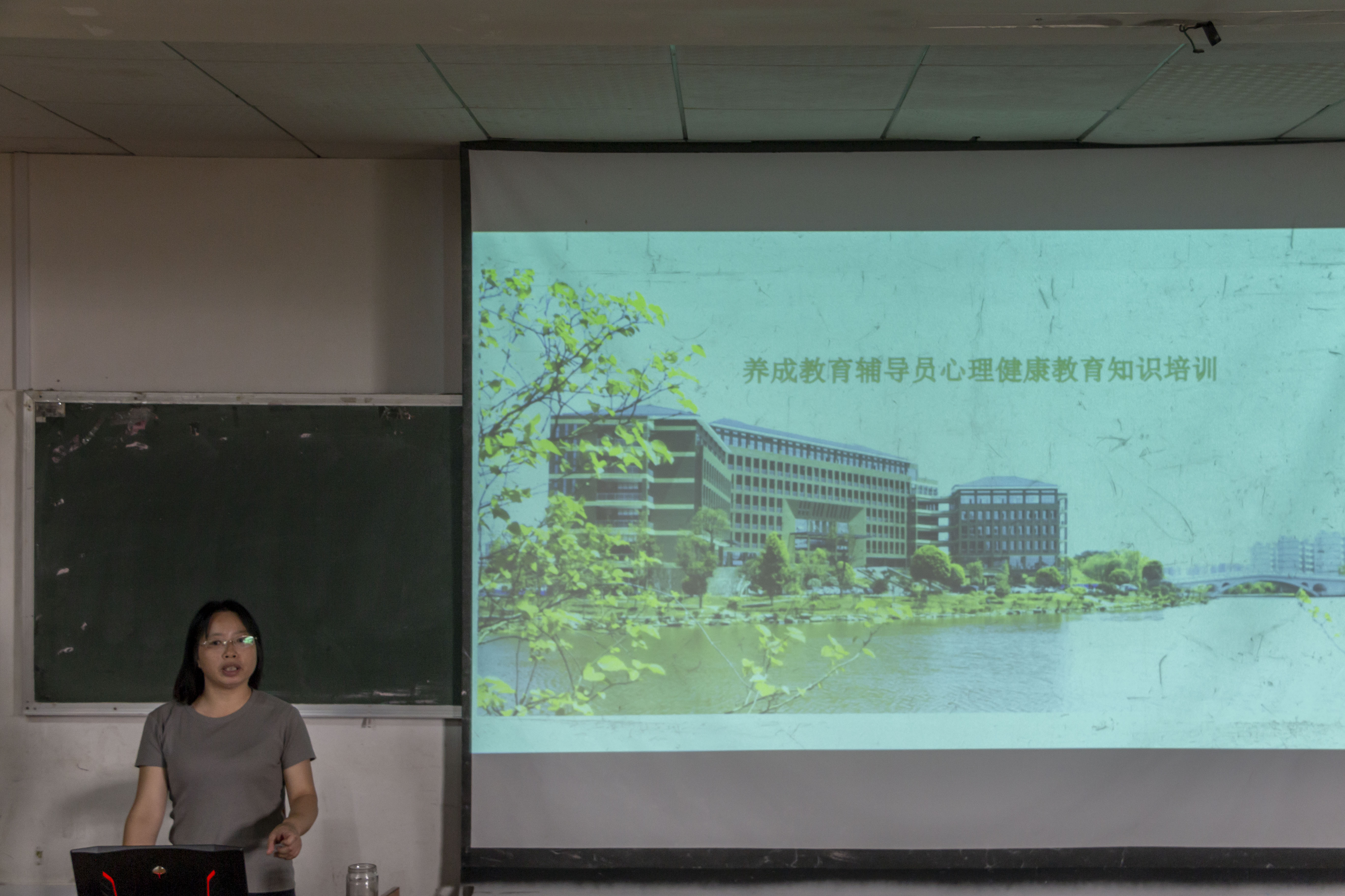 此次培训杨金娥以PPT解说的形式展开。培训内容涵盖大学生心理健康和大学生心理健康教育工作体系两个方面。杨金娥首先说明了助班对于新生所具有的里程碑作用,随后在分析完我校学生因心理问题而造成的休学率呈现上升趋势后,杨金娥围绕培训的两个方面对大学生心理健康的标准、误区和大学生常见心理困惑进行了详细说明,并全面解说了心理健康教育工作内容、工作方式以及心理实操性能力训练等相关的内容。她指出:“大学生常常会遇到人际关系、学习问题以及职业生涯上的心理困扰,助班们应了解班上每一位同学的心理状况,和同学们建立良好的信任关系,有需要的话还可以准备一本笔记本记录同学们的困惑,及时发现问题,适当给予疏导与关怀,必要时立即报告给辅导员老师。”