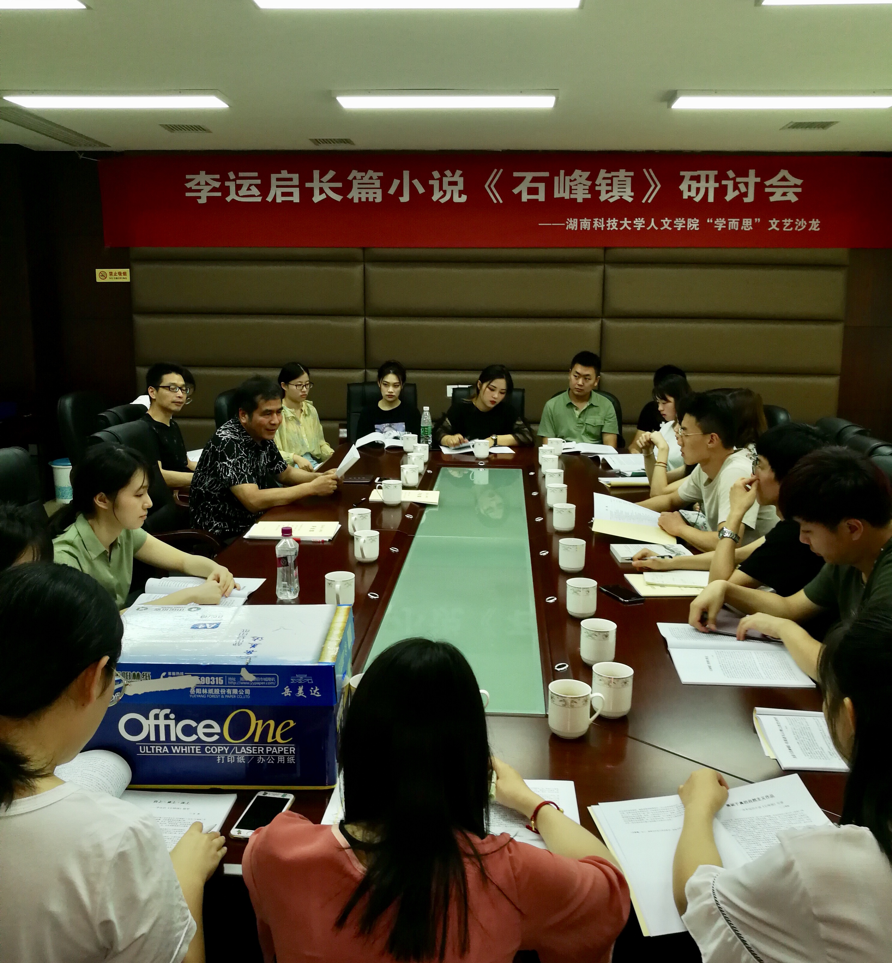 大学的文学院,古典文学和现当代文学,本是各种各的地,泾渭分明,难有往来,可是今天上午,湖南科技大学人文学院古典文学与现当代文学的老师和研究生,却就一部长篇小说《石峰镇》共同进行了一场别开生面的研讨,而且参会的每一个人,都是有备而来,都为这部写说写了一篇颇有份量的评论。