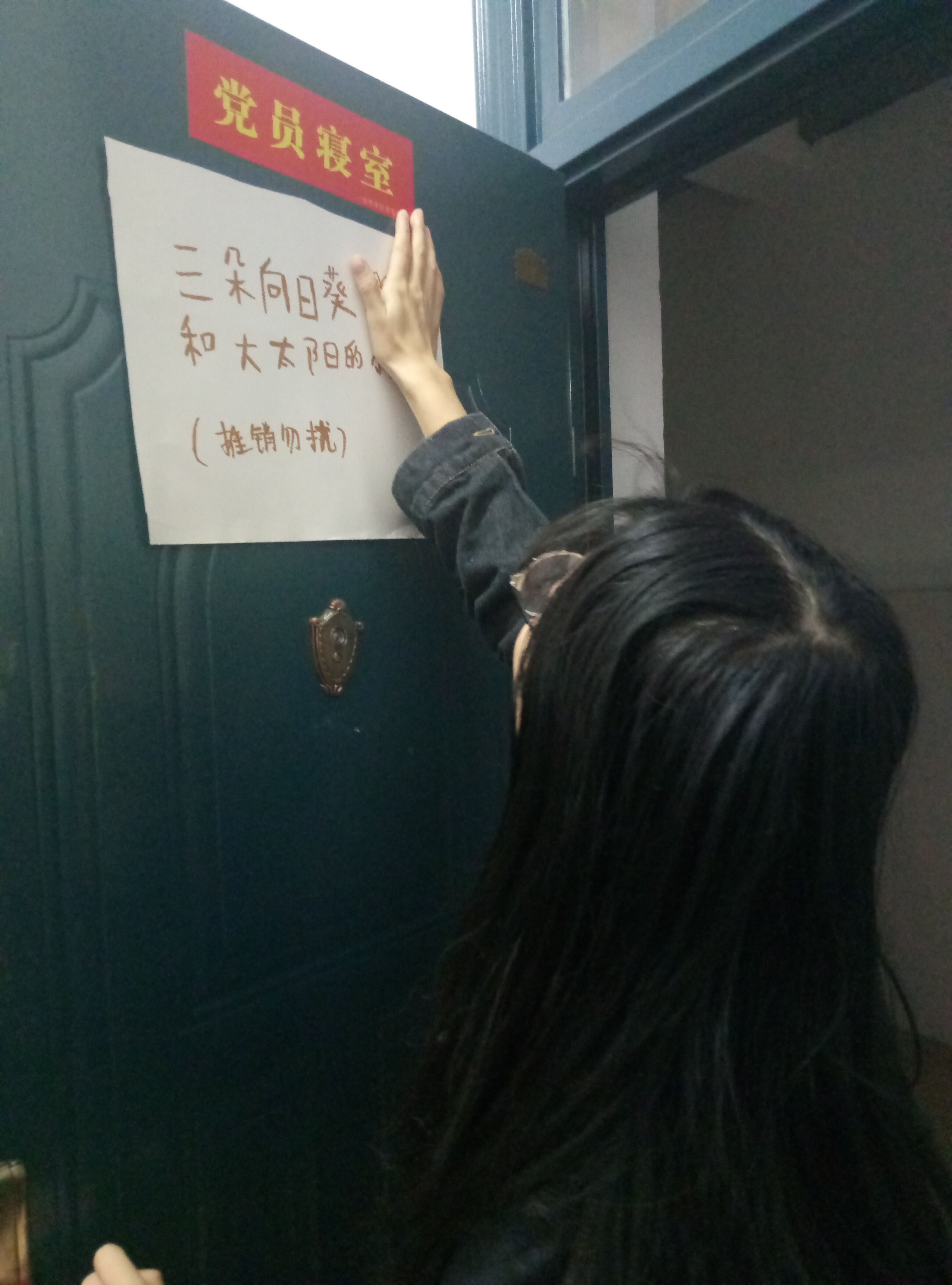 为进一步发挥学生党员的先锋模范作用,增强学生党员的责任感与使命感,2018年10月31日晚,信息与电气工程学院学生党建会组织开展为学生党员寝室粘贴“党员寝室”标签活动。