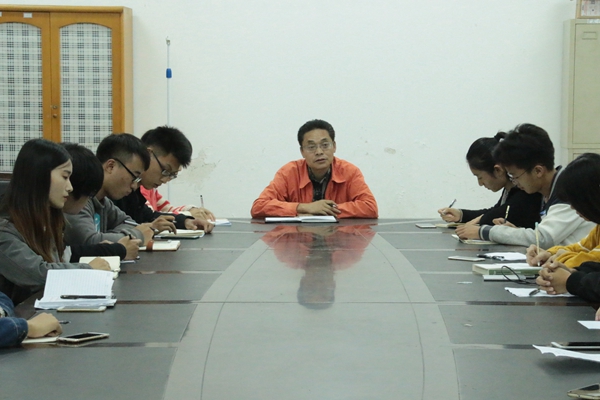 商学院党委副书记傅早霞主持本次大会,17级辅导员蔡美玲、杨美琴老师和学生会干部及新生各班助班参会。