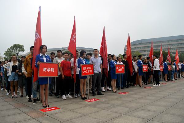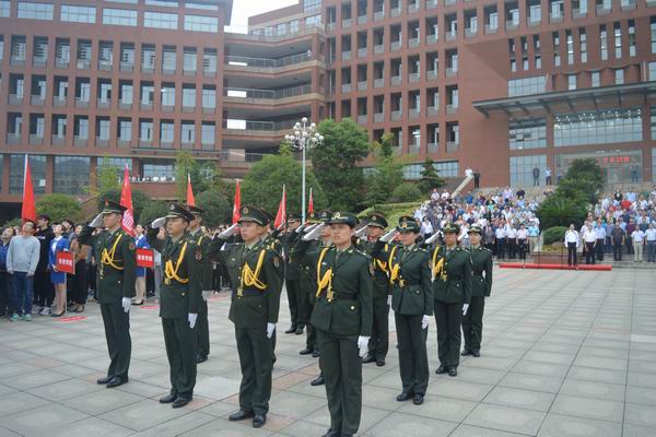 6点40分,在指挥老师的安排下,全体学生站成整齐的队伍,等待升旗仪式的到来。7点,在校长的主持下,升旗仪式正式开始。国旗班成员迈着铿锵有力的步伐来到了国旗台下。全场一片肃静。升旗手振臂一挥,鲜艳的五星红旗徐徐展开,全体同学行注目礼,心怀崇敬,高唱庄严的国歌声中,五星红旗在晨曦中迎风飘扬在湖南科技大学的上空。随后,校党委书记刘德顺教授发表了国旗下讲话,对新学期的工作和学习提出了几点要求和期待,并希望全校师生在新的学期里有新的收获。