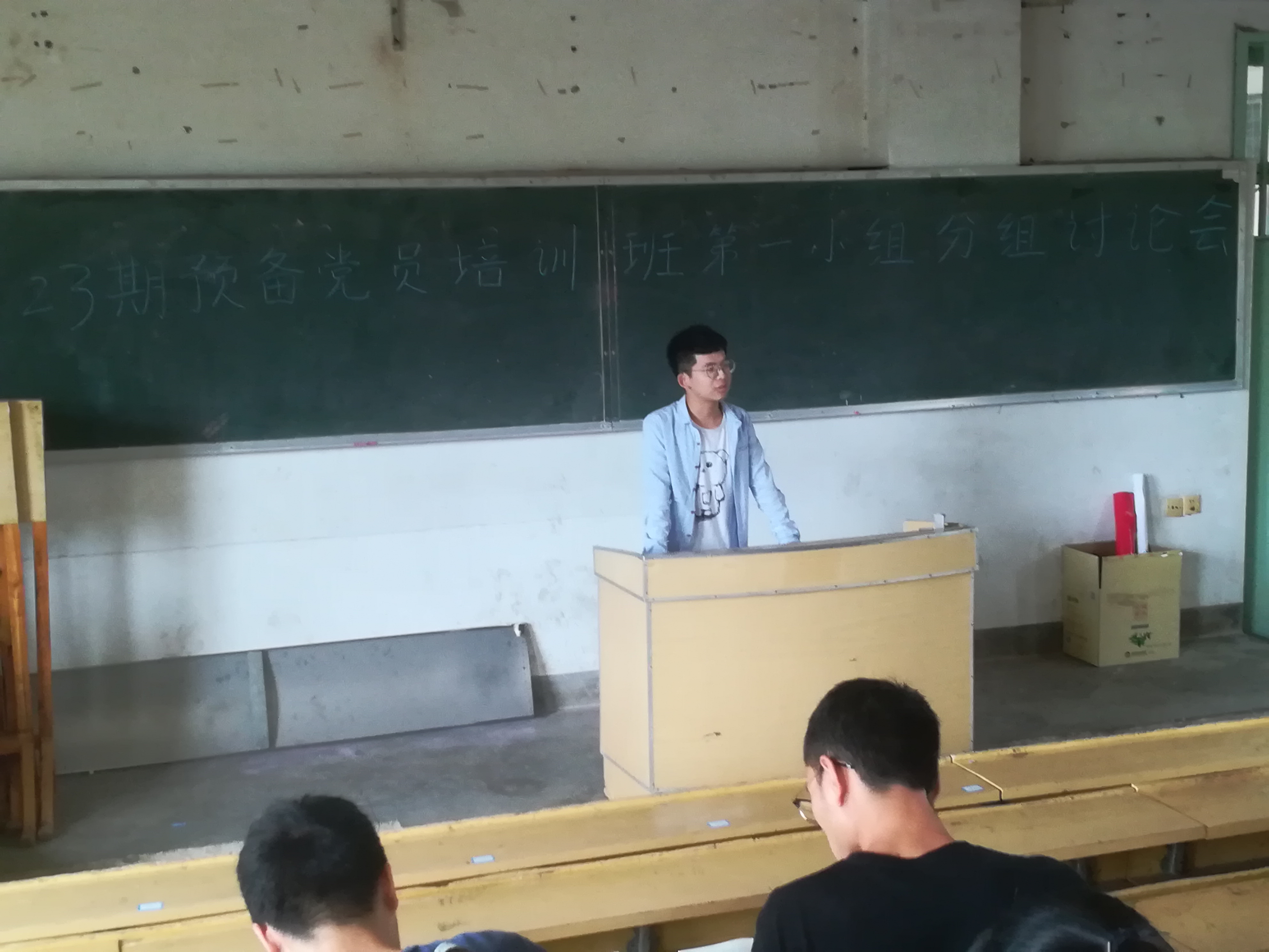 本期预备党员培训班学员首先分为两组在信息楼一二合班展开专题讨论。每位预备党员都踊跃上台围绕如何提高党性,如何理解、树立和践行社会主义核心价值观,如何更好进行支部理论学习以及如何解决支部对于不同年级之间的沟通氛围问题四个方面发表了自己的看法,现场气氛十分热烈。