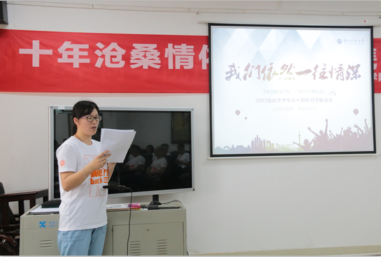 2003级经济学专业十周年同学联谊会于6月10日上午9点在三教410,如期举行。以“我们依然一样情深”为主题,回首同窗情,情意老同学,回忆校园记忆,感受同学十年成长。