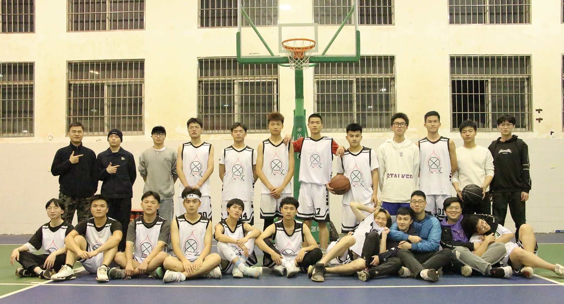4月27日,人文学院篮球队与相关人员于篮排馆合影。