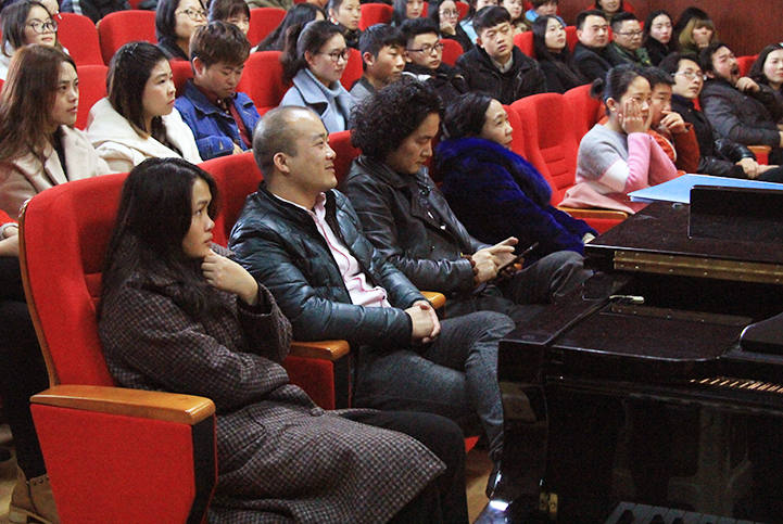12月27日下午,国际声乐大师晁浩建教授在艺术学院音乐系合唱教室开展了音乐讲座。艺术学院音乐系的学生积极到场,并认真听讲。