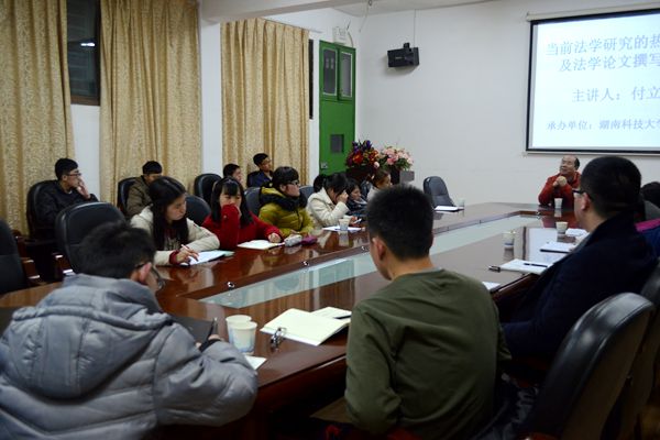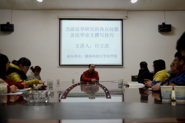 2015年3月9日晚上7点30分,中国人民大学法学院副教授,博士生导师付立庆应法学院邀请在十教606教室举行讲座。法学院副院长喻军、法学系副系主任邱帅萍及多位法学系专业教师出席本次讲座。