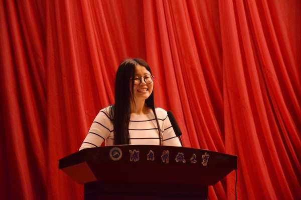 在庄严的国歌声中,会议正式拉开帷幕。会上,王俊年院长宣读了《关于表彰物理与电子科学学院2016年度五四先进团组织及优秀个人的决定》,随后进行了隆重的颁奖仪式。在典型发言中,校五四青年标兵胡清梅同学表示:“大学生应该勇于担当,敢于尝试,充分利用学院、学校提供的平台,充分发挥自己的潜能,挖掘自身价值。”校五四红旗团支部团支书张万里同学就如何建设优秀班级发表建言:“只有营造出好的学习氛围,引领广大同学勤读书、爱读书的价值取向,才能带领一个班级走向更美好的未来。”