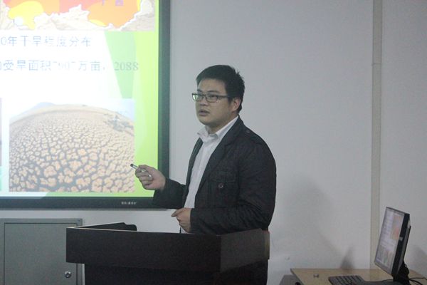 随后刘梅先博士就“基于copula的西南地区气候变化”这一课题展开报告。刘博士通过幻灯片展示气候变化对西南地区所造成的影响,指明西南地区生态的脆弱性。当被问及其研究的实际意义时,他说道:“各大水文管理工程需要了解事件的风险和变化就离不开此项研究。而且它对于生态系统对气候变化的研究同样具有重要意义”。