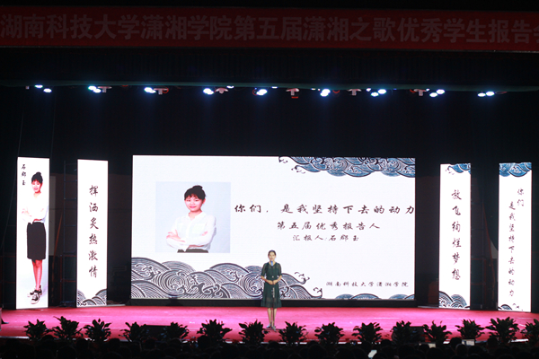 书写无悔青春,不负易逝芳华。5月23日晚,潇湘学院第五届“潇湘之歌”优秀学生报告会在俱乐部拉开帷幕,经过层层遴选脱颖而出的9名优秀学生闪亮登场。副校长胡石其出席,学校相关单位及部门负责人,潇湘学院全体院领导、辅导员以及1000多名学生到场,共同聆听这场关于青春与坚持的乐章。