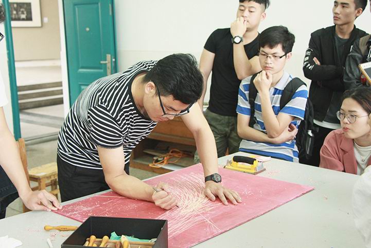 4月7号下午,王帅老师在美术楼218教室进对他的水印版画创作进行了现场演示。