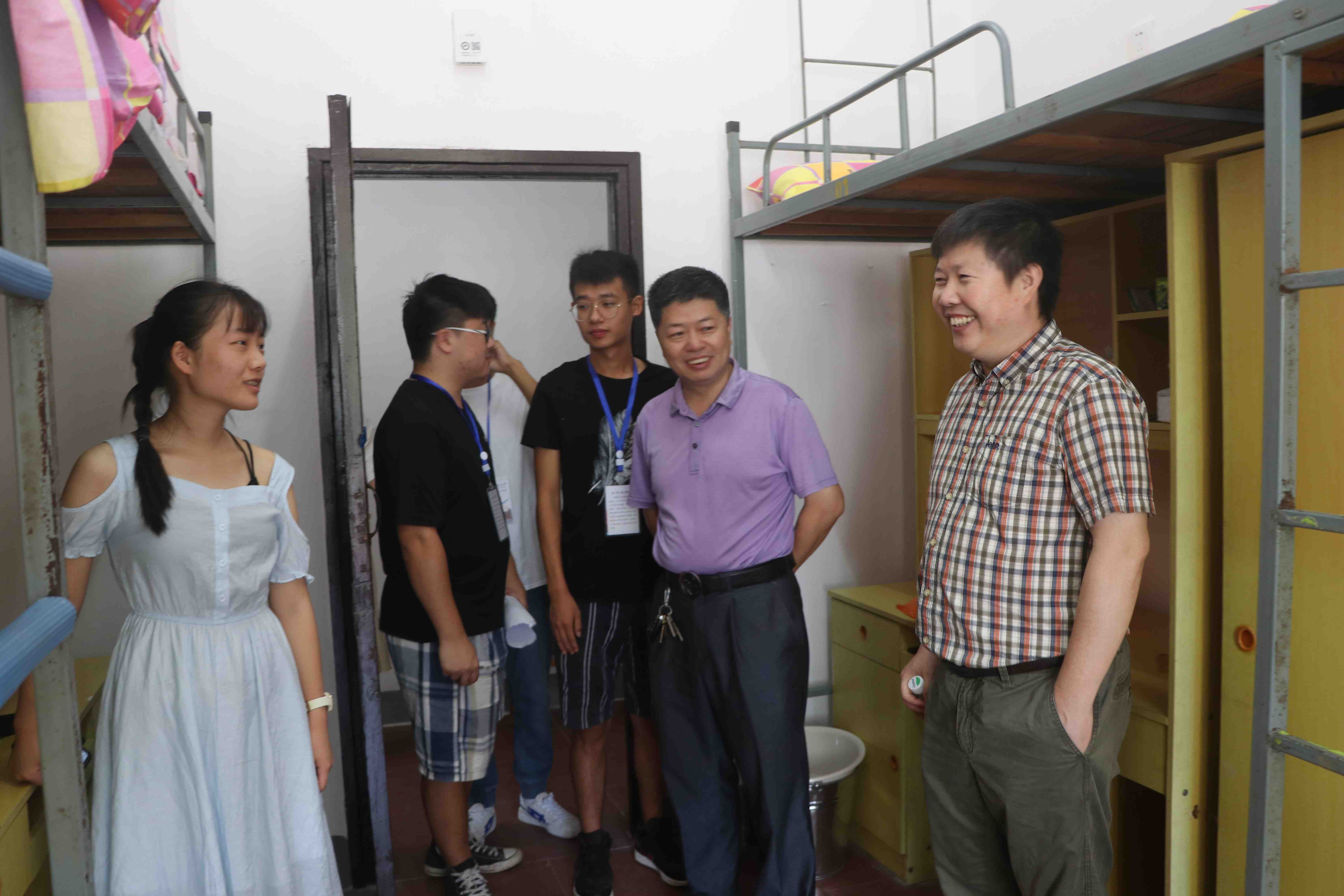 随后,他们一行人来到了2区男生寝室。18级男生住的是公寓,所以在卫生方面做的很好,并且部分寝室学习氛围十分浓厚,大家都已经开始预习即将学习的课程,祝院长和程书记对此很满意。程书记生动诙谐的说话方式让新生们与他们谈笑自若,畅所欲言;祝院长的平易近人让新生感受到了学院的关怀,产生一种归属感,使其能够更好更快适应大学生活。祝院长和程书记还语重心长地强调道:"一定不要沉迷网络要把生活重心放在学习和锻炼身体上,努力成为全方位发展的高素质人才。"