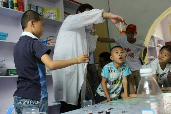 在这次暑期三下乡实践活动活动中,对正规农药的选择也缺乏判断能力。所以我们在得到当地水土,农作物样品检测结果之后,也做了建新村的回访工作,将结果反馈给当地村委会,并且制作了农药知识宣传海报为当地农民普及农药知识。除此之外, 我们也精心准备了旨在启迪农村小朋友们科学求知之心的趣味化学实验课堂,为农村留守儿童带去神奇有趣的化学实验现象,激发孩子们对神奇化学世界的向往。