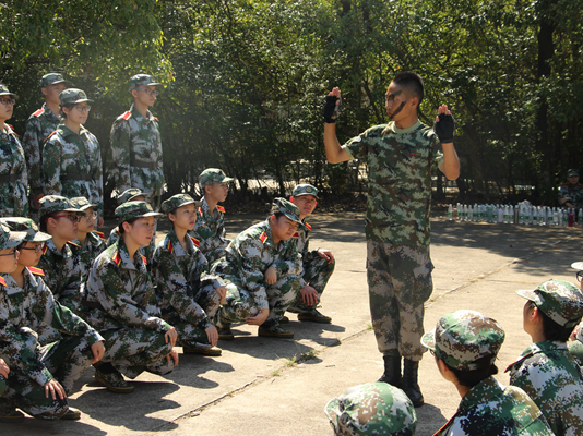 上午八点,人文学院2018级新生八个排的“新兵”个个身穿迷彩军装,在北校田径场集合,参加2018级新生军训动员大会,印有“人文学院”的大旗飘扬在我院新生队列的最前方。动员大会上,人文学院新生认真听取学习了副校长的报告、教官代表的发言,欣赏了教官们带来的精彩表演。会后,全体新生由各排教官带领,前往位于训练场地—北校旧篮球场,开始正式训练。“拇指尖贴于食指第二关节,中指贴于裤缝……”教官从最基础的军姿动作要领开始亲自示范,在一声声刚劲有力口号下,新生们一丝不苟的完成立正、稍息、跨立、坐下、起立等训练任务。