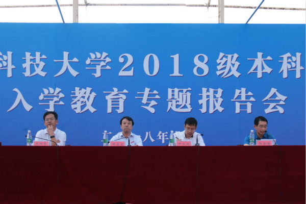 10月6日15:20,湖南科技大学入学教育专题报告会在北校田径场开展,我校副校长胡石其、学生工作处处长尹风雨、保卫处处长兼武装部部长朱理哲、网络与信息学院教授张金福以及18级全体新生参与本次报告会。