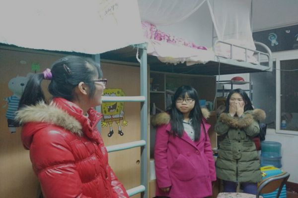 梅杨老师在下寝时,发现有的同学正忙于完成钢笔画作业,叮嘱她们要妥善安排好时间,尽量不要熬夜。 “不用下床,好好休息。”“你们有没有盖厚一点的被子?天气冷,要多注意保暖。”······老师们每一句话都暖在同学们的心里。“虽然远离家乡,放假也没能回家,但老师就像是爸妈一样,关心着我们。”一位同学说道。