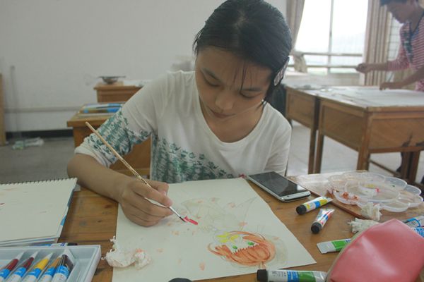 绘画组里的作品富有个性,油画棒、水彩、水粉、素描样样俱全,其中15级建筑学专业冯薇的作品让人印象深刻,在她的画中一位身穿盔甲的女战士手持灯塔,走向通往湖南科技大学的路,她告诉记者她就是那个女战士,“我希望我能像勇敢的女战士一样,毫无畏惧地迎接大学的新生活。