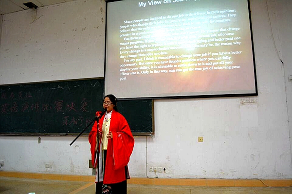 赛后记者采访专业组第一的好成绩的艾燕子,她表示为了这次比赛,很早就开始着手准备,不断对着镜子练习手势、表情,找老师和同学纠正自己的发音,在空教室、主席台练习演讲,基本每天都坚持练习半小时以上,不懈的努力让她最终夺冠。