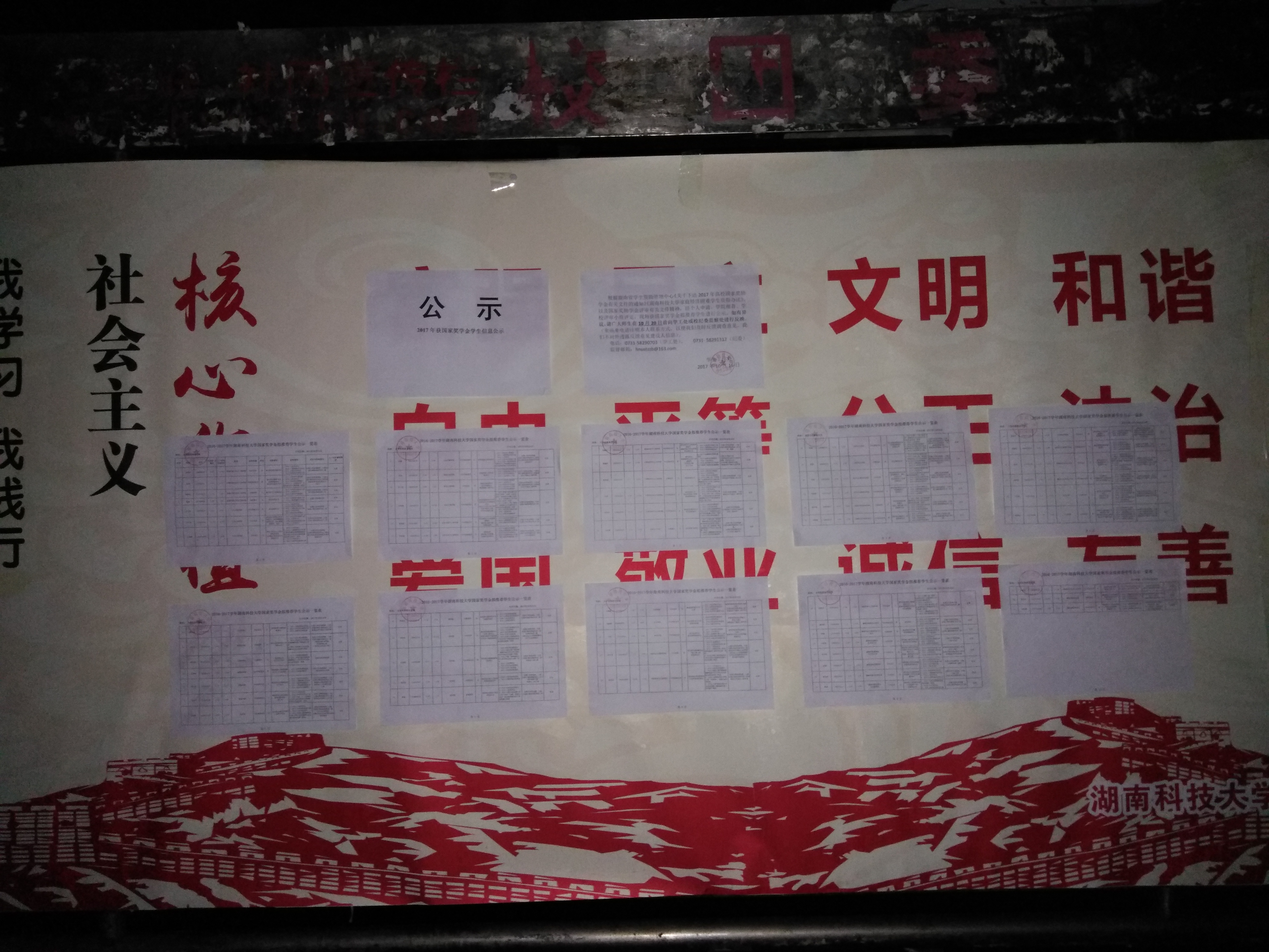 电信路口公告栏公示:2016-2017学年湖南科技大学国家奖学金拟推荐学生公示一览表